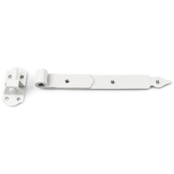 Teräksinen koukkusarana. Tapin halkaisija 12 mm. 35 x 400 mm. Mukana ruuvit. Pakkauksessa 2 kpl.