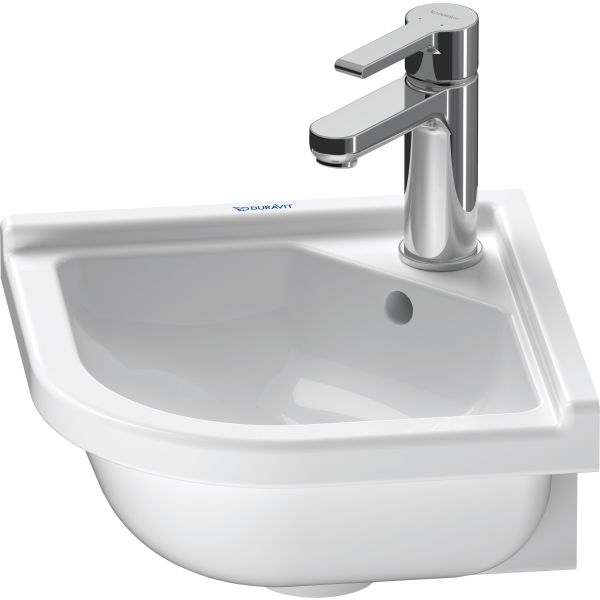Duravit Starck 3 -pesuallas 430 mm, valkoinen korkeakiilto, taso hanareiälle, hanareikien määrä: 1, ylivuotoaukko, tuotenro Duravit 0752440000.