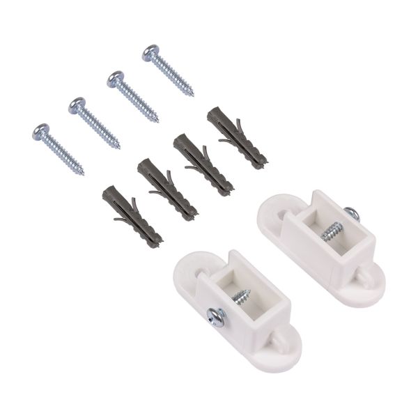 Kaksi seinäkiinnikettä (pari) WatWin Robust Verhokiskoon. Voidaan asentaa myös vinoihin kattoihin.