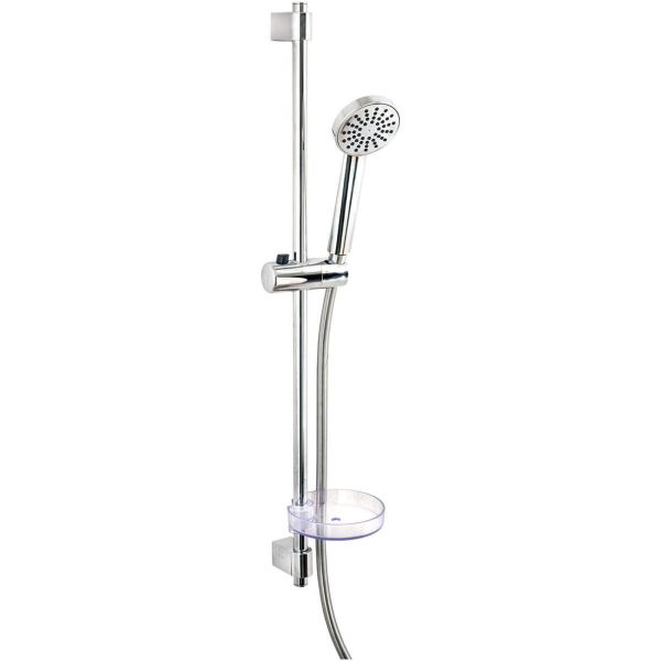 Arrow SlimLine on kromattu suihkusetti, joka koostuu käsisuihkusta, 750 mm pitkästä suihkutangosta, 1,5 m pitkästä suihkuletkusta ja saippuahyllystä.