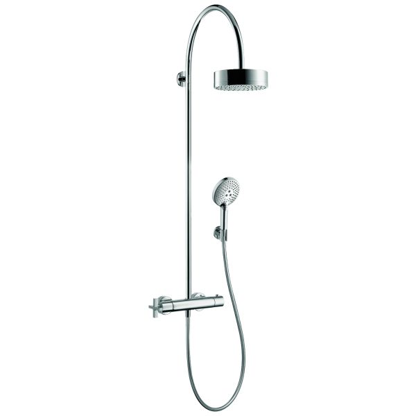Hansgrohe Axor Citterio on suihkusetti, joka sisältää ylä- ja käsisuihkun. Pääsuihku tarjoaa koko kehon ympäröivän pehmeän ja ilmavan RainAir-suihkun. Käsisuihkussa on 3 suihkutyyppiä: Rain, RainAir ja WhirlAir-hierontasuihku. Voit helposti vaihtaa eri suihkutyyppien välillä Select-painikkeella. Liian korkeiden lämpötilojen välttämiseksi termostaattihanassa on +38 °C:n turvarajoitin. Axor Citterio on Hansgrohen mallisto, jonka ajaton muotoilu sopii jokaiseen kotiin. Tyylille on ominaista pehmeät muotoilulinjat ja suorat reunat, jotka antavat ylellisyyden tunteen.