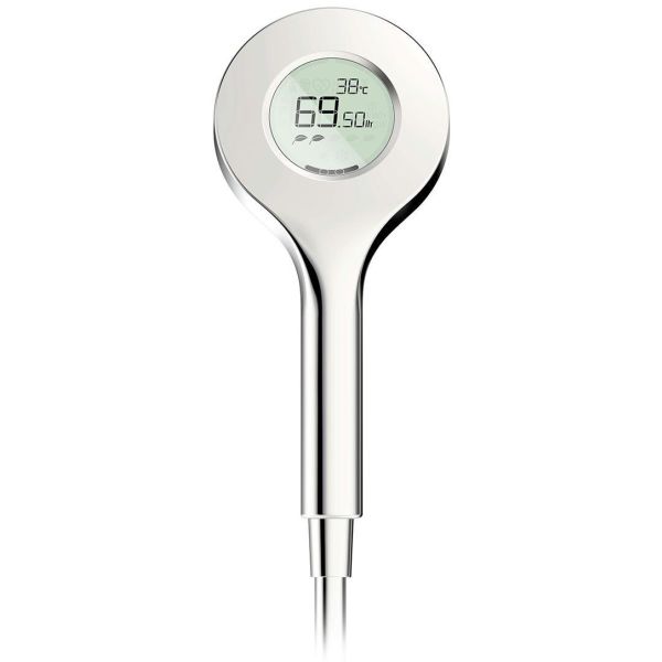 Digitaalinen, oman energiansa tuottava käsisuihku bluetooth-liitännällä Oras App -sovelluksen kautta – näyttää todellisen kulutuksen suoraan käsisuihkun näytöltä - vettä ja energiaa säästävä.