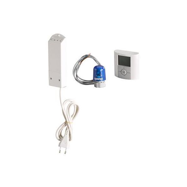 Uponor Fluvia T on ohjaussarja Uponor Push 12- ja Fluvia Push-12 -pumppuryhmille. Sisältää 230 V -toimilaitteen, vastaanotinyksikön, johon on esiasennettu verkkovirtaliitäntä ja langattoman huonetermostaatin (sis. 2 AAA-paristoa).