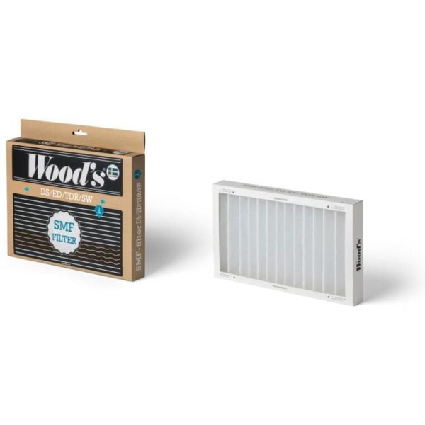 SMF-suodatin tulee kaikkien Woodsin ilmankuivainten mukana, joissa 6 vuoden tai sitä pitempi takuu. Suodatin parantaa myös sisäilman laatua, sillä käyttö ei ainoastaan laske tilan ilmankosteutta, vaan myös puhdistaa sisäilmaa. Lisäksi SMF-suodatin suojaa ilmankuivainta pölyltä ja lialta, joka pidentää laitteen käyttöikää. Pöly on pääsyy ilmankuivainten ja muiden kodinkoneiden rikkoutumiseen.