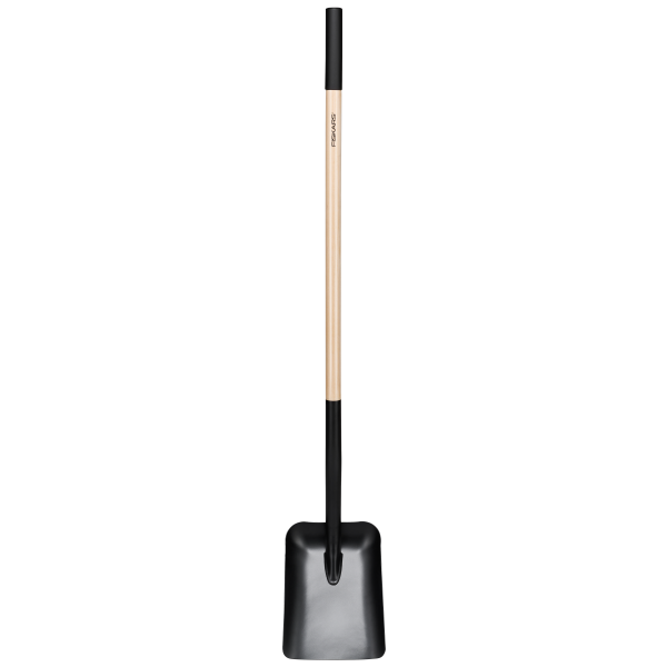 Fiskars Solid™ -kuuppalapio, jonka leveä terä soveltuu esimerkiksi mullan, hiekan ja soran kaltaisten materiaalien tehokkaaseen lapiointiin. Sen teräksinen pää on hitsattu FSC®-sertifioituun (FSC C108780) puuvarteen kestävyyden lisäämiseksi. Suora kahva tarjoaa hyvän otteen, hanskoilla tai ilman.
