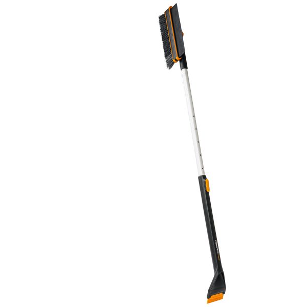 Fiskars jääraappa/lumiharja säädettävällä harjalla/kaavinosalla ja teleskooppisella varrella. Lumen ja jään poistamiseen hyvällä ulottuvuudella. Teleskooppinen varsi alumiinia. Pyörivä/kääntyvä pää harjaaviin ja raaputtaviin liikkeisiin. Varustettu vaihdettavilla kulutusosilla.
