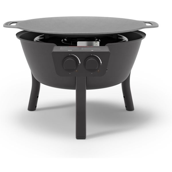 Kaasupolttimessa on säädin integroidulla sytytyksellä ja selkeällä merkinnällä, jonka avulla on helppo säätää lämpö sopivaksi. Lämpöä säädellään erikseen kahdessa kaasukehässä, mikä mahdollistaa eri lämpötila-alueiden käytön pannulla. Setti sisältää myös kiinteän tuulisuojan, joka suojaa liekkejä tehokkaasti. CE-merkitty, teho 7,9 kW ja kaasunkulutus 565–575 g/h. Pannua tulee säilyttää kuivassa, kun sitä ei käytetä.