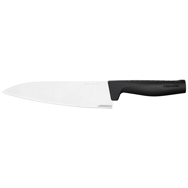 Iso Fiskars Hard Edge -kokinveitsi on erinomainen yleisveitsi kaikenlaiseen leikkaamiseen, mutta erityisesti suurempien ruokien käsittelyyn. Veitsessä on paksusta ruostumattomasta teräksestä valmistettu terä, jonka suunnittelussa on hyödynnetty innovatiivista LZR-EDGE™-teknologiaa. Teknologia pitää veitsen terävänä jopa neljä kertaa perinteisiä veitsiä pidempään. Veitsessä on ergonominen 3D-kuvioitu kahva, joka tarjoaa hyvän otteen. Veitsi on suunniteltu Suomessa ja se on konepesun kestävä.