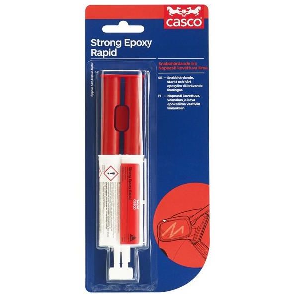 Casco Rapid - Epoksipohjainen, kaksikomponenttinen nopeasti kuivuva liima. Erittäin voimakas ja nopeasti kovettuva epoksiliima metallin, posliinin, keramiikan, betonin, puun ja useimpien muovien (ei rasvaisten muovien) liimaamiseen.