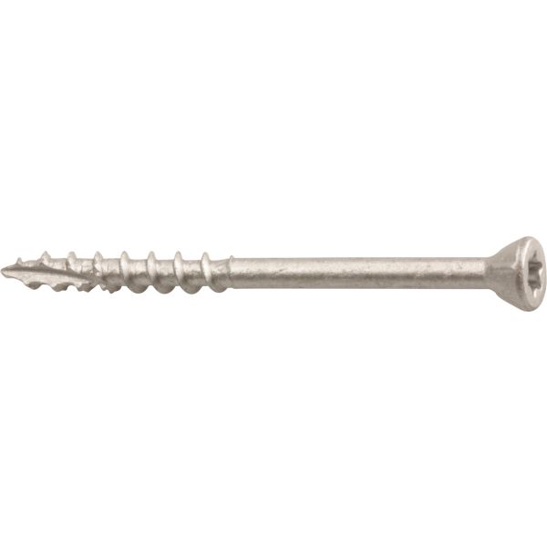 Uppokantainen terassiruuvi, joka on tarkoitettu terassilautojen ja kaiteiden kiinnittämiseen puukoolaukseen. Sopii sekä sisä- että ulkokäyttöön.