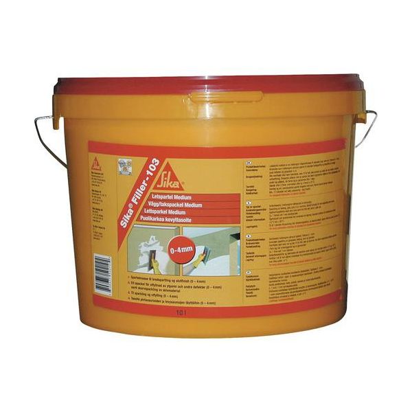 Sika Filler-103 käytetään yleistasoitteena kuivissa tiloissa, joissa halutaan tasainen ja sileä pinta, joka on valmis maalattavaksi, tapetoitavaksi tai vastaaavasti käsiteltäväksi. Voidaan käyttää mm. betonille, kevytbetonille, laastille, kipsilevyille, kerrospaksuus 0 - 4 mm.