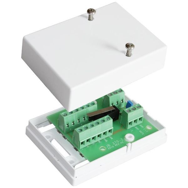 JB 370-2 on kytkentärasia, joka helpottaa lasirikkoilmaisimen GD 370 asentamista. Ilmaisimen johdin kytketään viemällä johdin suoraan rasian liittimiin ja siitä seuraavaan lasirikkoilmaisimeen. Kytkentärasia kytkee maks. 2 x GD 370 IU 370 ja/tai useita JB 370/JB 370-2/JB 370-5. JB 370-2:ssa on sisäänrakennettu vastus lasirikkohälytyksen kuittaamiseksi (valitsimella) sekä ilkivaltasuojausta varten. Kun useampi GD 370 asennetaan tilaan, jossa voidaan käyttää yhteistä kytkentäpistettä, JB 370-2 on erinomainen valinta kytkentärasiaksi. JB 370-2 toimii myös päätevastuksena viimeisessä GD 370:ssa.