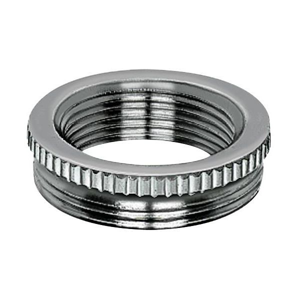 Supistusmuhvi nikkelipinnoitettua messinkiä. Iso ulkokierre ja pieni sisäkierre, DIN 46 320.