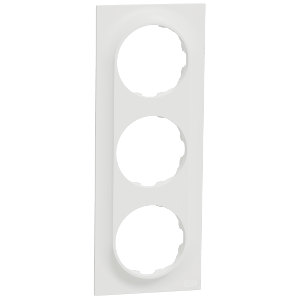 ELKO One 3-kehys ohuella ja tyylikkäällä muotoilulla. Soveltuu sekä pinta- että uppoasennukseen. Tuotteen mitat ovat (L) 87 mm x (K) 229 mm x (S) 10,5 mm. Se on valmistettu kierrätetystä polykarbonaatista (PC). Tuotteen väri on kirkkaan valkoinen (RAL 9003) ja se on mattapintainen. Se saavuttaa IP21-suojaustason.