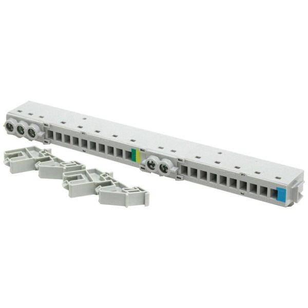 Pikaliittimet maadoitukseen ja nollalaitteisiin standardikeskuksissa. Mukana toimitetaan DIN-kiinnikkeet. Soveltuu kaikkiin Garon vakiokeskuksiin ja -kaapeleihin paitsi NUP-sarjaan. PE, 6x2,5-16mm² + 21x1,5-4mm².