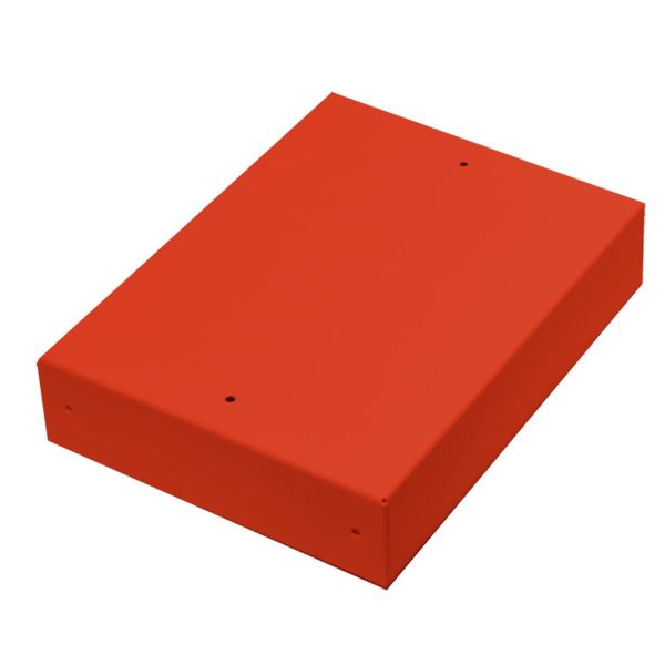 Sinkitystä pellistä valmistettu tukeva laatikko, jossa maalattu punainen kansi ja lyhyellä sivulla esirei'itetyt ulostulot, jotka on peitetty muovitulpalla. Sopii kaikkiin Fatum-sarjan vakiomoduulien liittimiin, valmius moduulille. Koteloita on saatavana myös saman kokoisina, mutta ilman merkintäaukkoa. Lisäksi saatavilla seinämerkintäkyltti, osanumero 3132.01, lisätulppa 0905.18 ja seinävälikkeet 2590.04