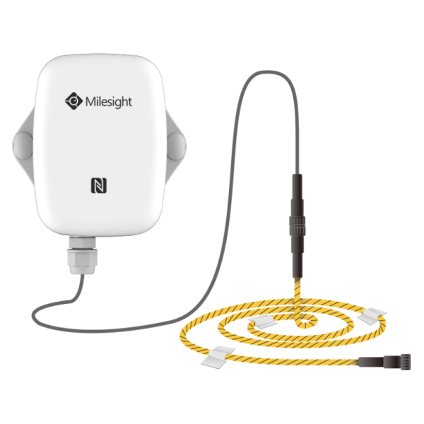 Milesight EM300ZLD on kaapelilla varustettu vesivuotosensori/vesivuotoilmaisin kosteuden ja vesivuotojen tunnistamiseen. ZLD soveltuu veden läsnäolon havaitsemiseen ja tunnistamiseen sekä käyttäjien etävaroittamiseen mahdollisista vesivuodoista, vesiroiskeista tai märistä lattioista. Laite tukee veden ja muiden johtavien nesteiden vuodonhavaitsemista, kun nestetaso saavuttaa 5 mm.