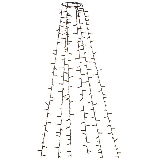 Konstsmide 6651-830 on valosarja joulukuuselle, jossa on 180x6 amber-väristä LEDiä (cluster/huurrettu). Musta johto, ajastin 8 h.
