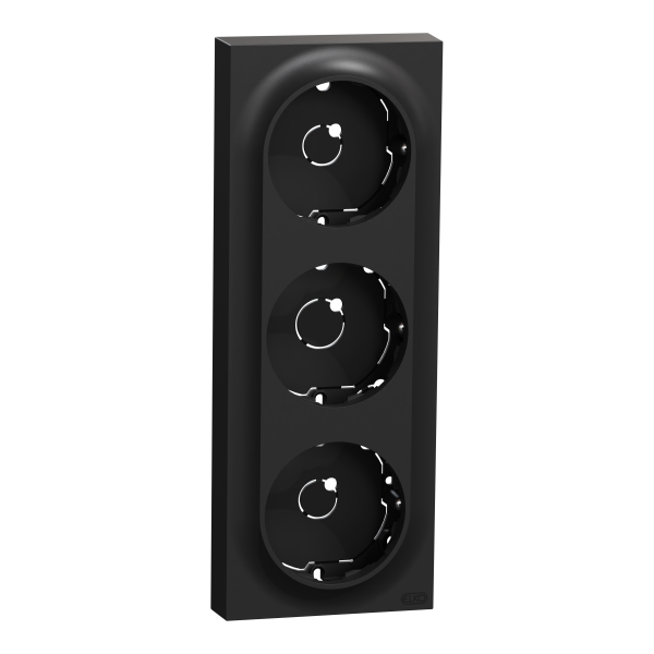ELKO One 3-pintakojerasia matala. Tämä matala versio on optimoitu kytkimille, joissa on ruuviliittimet. Kun asennus tehdään olemassa olevan upporasian päälle, poistamalla pintakojerasian pohja, voidaan myös matalaan pintakojerasiaan asentaa tilaa vaativia tuotteita, kuten säätimiä. Tuotteen mitat ovat (L) 87 mm x (K) 229 mm x (S) 29 mm. Se on valmistettu kierrätetystä polykarbonaatista (PC). Tuotteen väri on musta (RAL 9005) ja se on mattapintainen. Suojaustaso on IP21 ainoastaan, jos kaapeli tulee alakautta. Muussa tapauksessa suojaustaso on IP20.