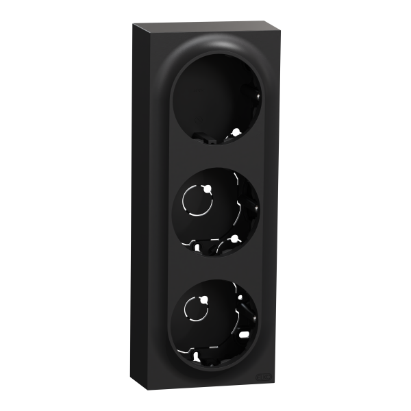 ELKO One 3-pintakojerasia, korkea. Tämä korkea versio sopii kaikkiin toimintoihin ELKO One -valikoimasta, kuten jousiliittimillä varustetut kytkimet, pistorasiat ja valonsäätimet. Voidaan asentaa suoraan seinälle tai upotetun kojerasian päälle. Tuotteen mitat ovat (L) 87 mm x (K) 229 mm x (S) 45 mm. Se on valmistettu kierrätetystä polykarbonaatista (PC). Tuotteen väri on musta (RAL 9005) ja se on mattapintainen. Suojaustaso on IP21 ainoastaan, jos kaapeli tulee alakautta. Muussa tapauksessa suojaustaso on IP20.