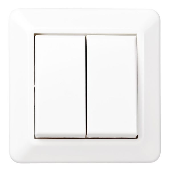 Puhtaanvalkoinen painevaihtokytkin, jossa kanta, keinukytkin ja runko on valmistettu halogeenivapaasta termoplastista. Painettava kansirunko ja keinuvipu ovat vakiovarusteita. Kansikehys voidaan myös kiinnittää ruuveilla. Kiinnitysruuvien väli 60 mm. Johtimien nopea kytkentä. Tarkoitettu yhdistelmäasennukseen. Voidaan täydentää upotettavaan asennukseen tarkoitetulla tiivistedamaskilla suojausluokan IP44 saavuttamiseksi. Asennussyvyys 21mm.
