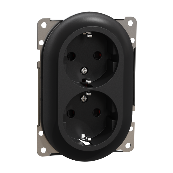 ELKO One keskiölevyllinen matala 2-pistorasia jousiliittimillä on kehitetty yhdessä sähköasentajien kanssa. Uudistetut jousiliittimet nopeuttavat asennusta ja uudet ergonomiset vapautuspainikkeet helpottavat johtojen irrottamista. Asennetaan 1.5-kojerasiaan. Nimellisjännite on 250 V AC taajuudella 50/60 Hz, ja nimellisvirta on 16 A. Tuotteen mitat ovat (W) 71 mm x (K) 106 mm x (S) 42 mm. Se on valmistettu kierrätetystä polykarbonaatista (PC). Tuotteen väri on musta (RAL 9005) ja se on mattapintainen. Se saavuttaa IP21-suojaustason IK08-iskulujuudella.