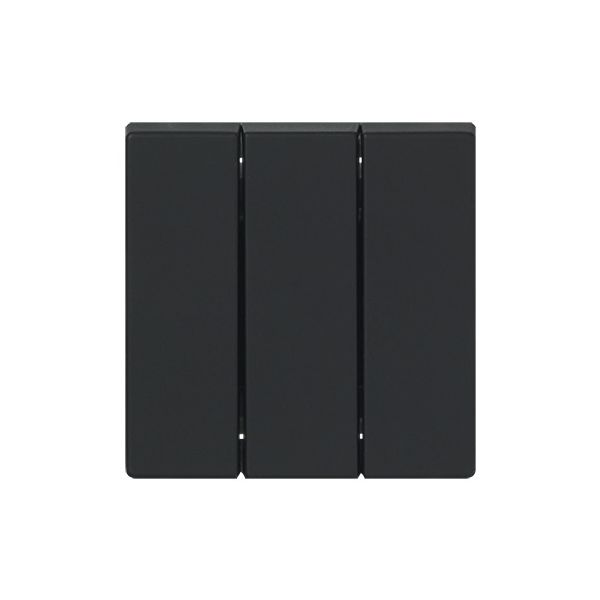 Mattamusta 3x1-napainen vipu, joka sopii 3-vipuselle kytkinrungolle 10631.xx. Vipu sopii 1-osaiselle laitteelle tarkoitetun peitelevyn aukkoon tai sovittimen 2519-xx kanssa 2-osaiselle laitteelle tarkoitettuun aukkoon.