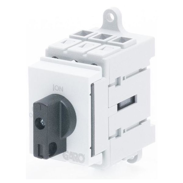 Pääkytkin DIN-kiskoon asennettavaksi. Täyttää vaatimukset pääkytkimenä, jolla on erotinominaisuudet, voidaan sijoittaa koteloihin, joissa on johdonsuojakatkaisijat.
