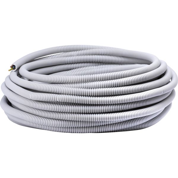 Tuotenumero: 2821470Taipuisa, 16 mm aaltoputki, jossa on etukäteen vedetty kaapeli EK/H07V-U, joka eliminoi kaapelien reititystarpeen. Tuote on testattu kestämään 750 N painevalu. Putkessa on hyvä iskunkestävyys ja sitä on helppo käsitellä.