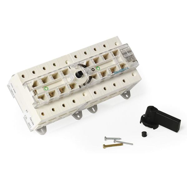 Kytkin 1-0-2 DIN-urille näkyvällä murtopisteellä. Liitäntäalue: Cu 50 mm²