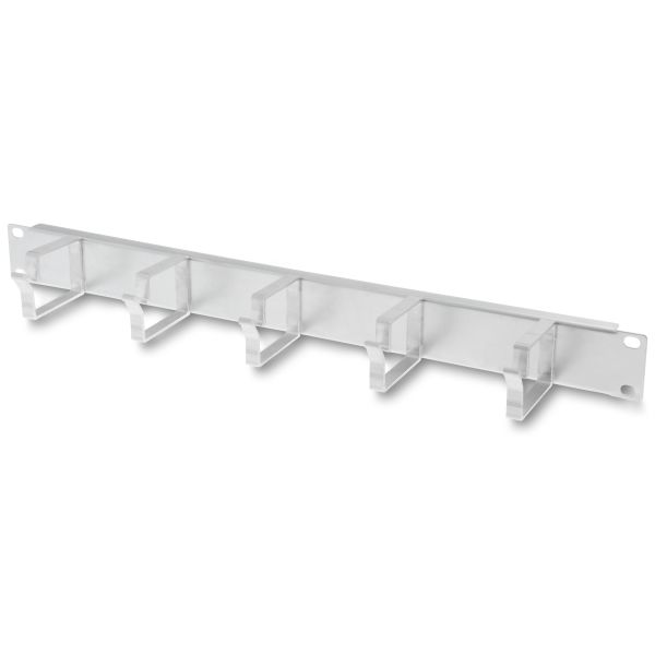 Ohjuripaneeli, jossa on 5 kiinnikettä liitäntäkaapeleiden järjestelyyn 19 tuuman telineessä. Sis. korimutterin ja ruuvin.