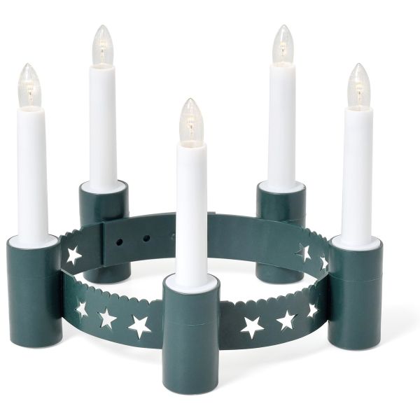 Konstsmide 1182-000 on Lucia-LED-kruunu (vihreä, 5 LED-kynttilää), 5xAA.
