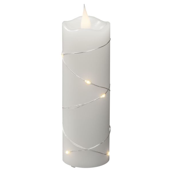 Konstsmide 1825-190 on valkoinen LED-vahakynttilä mikro-LEDeillä (lämpimän valkoinen), 5x15,2 cm. Ajastimella 4/8 h, 2xAA.