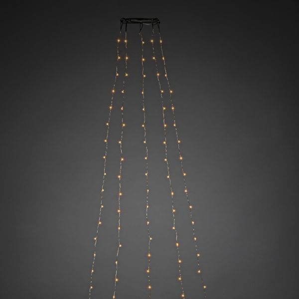 Konstsmide 6379-890 on valosarja joulukuuselle, jossa on 60x5 amber-väristä LEDiä. Korkeus 300 cm, hopeanvärinen johto. 14V/IP22.