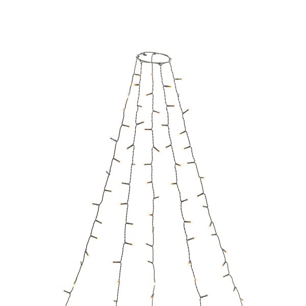 Konstsmide 6486-870 on valosarja joulukuuselle (180 cm), jossa on 5x30 amber-väristä huurrettua LEDiä. Vihreä johto, 14V/IP20.