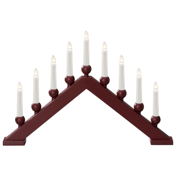 Tuotenumero: 3118424Konstsmide 3934-525 on puinen sähkökynttelikkö 9 kynttilällä. Tummanpunainen (matta). Kytkimellä, 230 V / IP20.