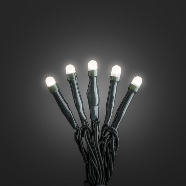 Konstsmide 6344-120 on valosarja, jossa on 100 lämpimän valkoista LEDiä (huurrettu). Tummanvihreä kaapeli, 30V/IP20.