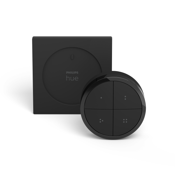 Philips Hue Tap Dial Switch on langaton, paristokäyttöinen Tap dial switch -kytkin Philips Hue -valaistusjärjestelmälle. Sillä voi sytyttää ja sammuttaa valot, himmentää valoa sekä valita suosikkivalokohtauksia. Laite toimii sekä kiinteästi seinälle asennettuna että kannettavana kaukosäätimenä.
