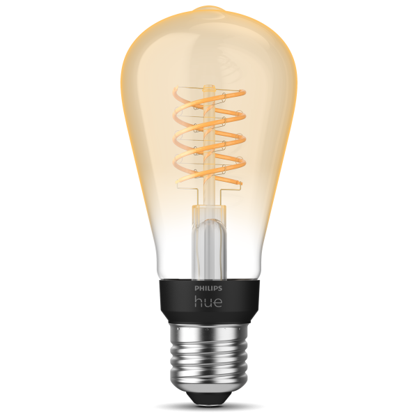 Hue White -sarja tarjoaa perustason älyvalaistustoiminnot ja mahdollistaa sekä laadukkaat valo-ominaisuudet että mahdollisuuden yhdistää lamput lisävarusteisiin, jotka mahdollistavat valonlähteiden ohjauksen niin kotona kuin poissa ollessasi. Valonlähde tuottaa pehmeää valkoista valoa, jota voidaan himmentää kirkkaasta päivänvalosta rauhalliseen yövaloon, ja näin kirkkaustasoa voidaan säätää tarpeen ja tilanteen mukaan. Edison-kupu selkeästi näkyvällä filamenttisisäkierukalla ja kirkkaalla lasilla. Lamppu yhdistää vintage-tyylisen ulkonäön Philips Hue -valaistuksen tarjoamiin ohjaus- ja himmennysmahdollisuuksiin.