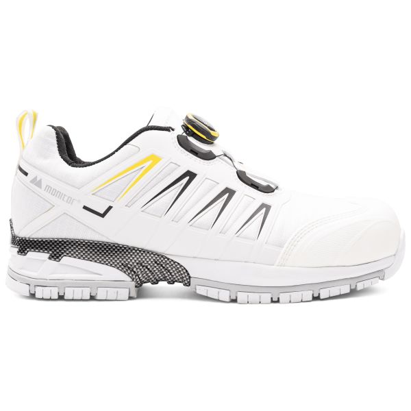 Monitor Mig on urheilullinen turvajalkine, joka ei vain näytä urheilujalkineelta, vaan joka tuntuu sellaiselta myös istuvuudeltaan ja käyttömukavuudeltaan. Päällisen Boa®-järjestelmä takaa nopean ja helpon nauhoituksen ja tarkan istuvuuden. Päällinen on kestävää Ripstop-materiaalia ja siinä on TPU-vahvikkeet sivuilla. Varpaassa TPU-suoja, joka parantaa kengän lujuutta. Ulkopohja on Monitorin uusi SIGMA-pohja, joka on klassikoksi muodostuneen Alpha-pohjan paranneltu versio. SIGMA-mallissa on kuminen ulkopohja kuviolla, joka takaa hyvän pidon useimmilla alustoilla. Siinä on myös välipohja vaimentavasta EVA-materiaalista. Lisäksi tehokas kiertojäykiste vakauden lisäämiseksi. Turvakärki on alumiininen ja leveä. Kengässä on myös Monitorin SS2.0 -pohjallinen.