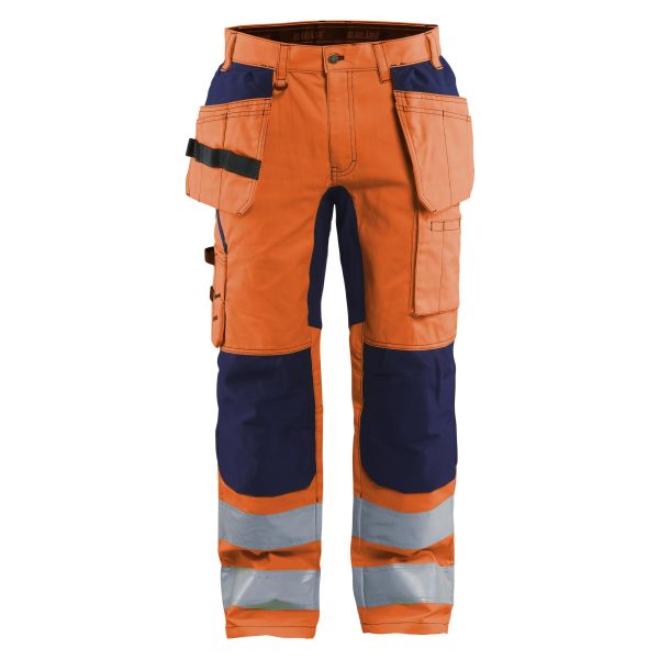 Huomiotyöhousut, joissa stretch-kangasta haarojen ja lantion alueella sekä CORDURA®-stretch -polvisuojataskut parhaan mahdollisen mukavuuden mahdollistamiseksi. Housuissa on riipputaskut ja mittatasku. Sertifioitu EN ISO 20471 luokka 2 mukaan.