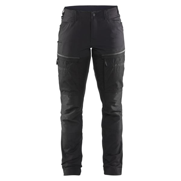 Mukavat ja kestävät housut, joissa on resori vyötäröllä sekä joustavia kangasosioita liikkuvuuden parantamiseksi. Kapeampi istuvuus. CORDURA®-stretch -vahvistetut polvet. Pidennysmahdollisuus lahkeissa. Huolellisesti suunnitellut yksityiskohdat, kuten useat käytännölliset taskut, kaksi vetoketjullista paljetaskua reisien päällä sekä isompi tasku esimerkiksi asiakirjoille. Kontrastiväriä saumoissa ja vetoketjuissa sekä heijastavia yksityiskohtia parantamaan näkyvyyttä.