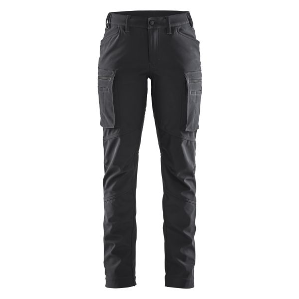 Joustavat naisten softshell-housut syys- ja talvikäyttöön. Pehmeät, kevyet ja hengittävät housut sopivat hyvin kylmätiloissa työskenteleville ja kuljettajille.