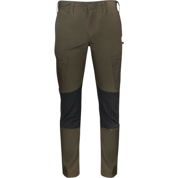 Työhousut kestävästä Ripstop-kankaasta (sekoitus puuvillaa ja polyesteriä). Hieman tiukempi leikkaus, joka kuitenkin tuntuu mukavalta päällä. Pehmeä mekaaninen jousto polvissa ja takana. Kaksi vetoketjullista reisitaskua, oikeassa lahkeessa kynätasku sekä sivutaskut, joista oikeanpuoleinen on vetoketjullinen (esim. matkapuhelimelle tai lompakolle). Avoimet takataskut. Materiaali Ripstop-kangasta: 60 % puuvilla, 40 % polyesteri, 210 g/m².
