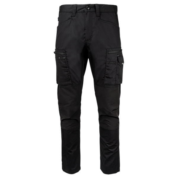 Texstarin työhousut, jotka yhdistävät tyylikkään muotoilun, hyvän käyttömukavuuden ja kestävyyden. Valmistettu kierrätyspolyesteristä ja puuvillasta. Nelisuuntainen jousto, joka lisää liikkuvuutta ja käyttömukavuutta. Vetoketjulliset reisitaskut, magneettilukot taskuläpissä sekä fiksut säilytysratkaisut työkaluille ja puhelimelle.