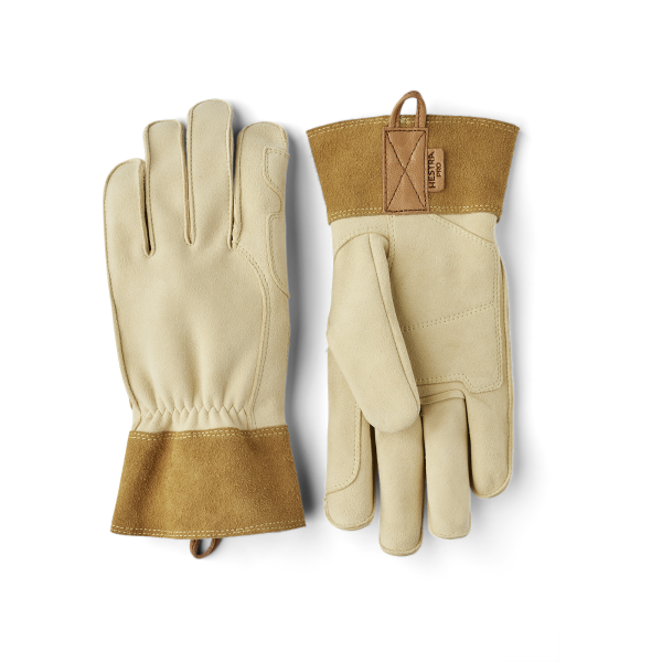 Hestra Pro Ranch on korkealaatuinen työkäsine nahasta, joka sopii hyvin puutarha- ja pihatöihin. Valmistettu kromittomasta ja parkitusta vuohen- ja naudannahasta, joka kestää hyvin kulutusta. Kämmenalue on kaksinkertaisesti vahvistettu ja leveämpi ranneke helpottaa pukemista. Nahka on materiaalina luonnostaan lämmöltä suojaavaa, joten käsine soveltuu myös työskentelyyn jossa riski liekeille ja kipinöille. Nahka on vettä hylkivää sekä pestävissä. Pese haaleassa vedessä käyttäen mietoa oliiviöljysaippuaa ja anna kuivua (ainoastaan ilmakuivaus).