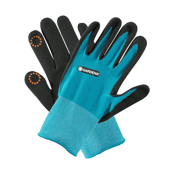 GARDENA istutuskäsineet kokoa L ovat erinomaiset kukkien istuttamiseen, maan möyhentämiseen tai rikkaruohojen kitkemiseen. Käsineiden nitriilipinnoite on erityisen käytännöllinen, sillä se suojaa käsiäsi kosteudelta, kun työskentelet kostean maaperän parissa. Lisäksi istutuskäsineet ovat hengittävät, joten kädet eivät hikoile vaativimmissakaan puutarhatöissä. Peukalon ja etusormen kätevä Mobile Touch -pinta mahdollistaakin älypuhelimen kosketusnäytön käytön käsineet kädessä. Nämä hyvin käteen istuvat puutarhakäsineet on Öko-Tex® 100 -sertifioitu, joten niissä ei ole käytetty lainkaan haitallisia aineita.