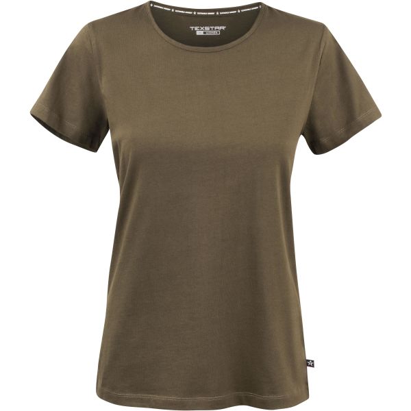 Naisten T-paita 100-prosenttisesta luomupuuvillakuidusta (GOTS-sertifioitua).