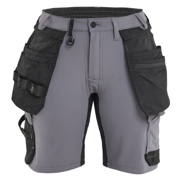 Naisten riipputaskushortsit hieman ohuemmasta neljään suuntaaan joustavasta kankaasta, joka tarjoaa hyvän käyttömukavuuden. Irrotettavat riipputaskut, palkeelliset takataskut, mittatasku ja lenkki vasaran pidikkeelle sekä vasemmalla että oikealla puolella.