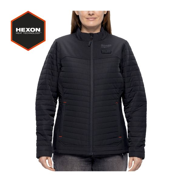 Milwaukee naisten M12™ HEXON puffer -lämpötakki, jonka HEXON HEAT TECHNOLOGY™-rakenne nopeuttaa lämpenemistä ja jakaa lämmön tasaisesti. Jopa 12 tunnin käyttöaika yhden M12™ REDLITHIUM™ 3,0 Ah -akun latauksella. 5 lämpöaluetta rintakehässä, selässä ja olkapäillä. 3 kosketusnapilla säädettävää lämpöasetusta: korkea, medium ja matala. Kevyt, kestävä ja repeytymätön polyesterikangas tarjoaa ohuen muotoilun, joka toimii ulko- tai välikerroksena (ulko- ja sisävuori 100 % polyesteria).